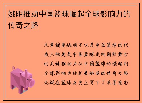 文章摘要:托尼·帕克,这位法国篮球的传奇人物,以四次NBA总冠军的成就书写了属于自己的辉煌篇章。在全球篮球舞台上,他不仅带领圣安东尼奥马刺队创造了无数辉煌,更为法国篮球的未来奠定了坚实的基础。从职业生涯的成功到对年轻球员的影响,托尼·帕克的传奇为法国篮球带来了深远的影响。本篇文章将从多个角度探讨托尼·帕克四冠传奇如何塑造了法国篮球的未来,分析他对国家篮球体系、球员发展、篮球文化以及国际篮球地位的贡...